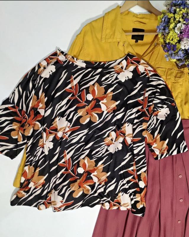 ❤️милейший джемпер футболка в осенний принт, плечевой шов отсутствует, очень приятный на ощупь, рукав укороченный, фасон свободный ☑️ Размер- 22, можно 20 Пог свободно до 68, длина от плеча 65, рукав от горловины 51 ☑️ Бренд- f&f ☑️ Состояние- идеальное Фото на теле не делаю!!!