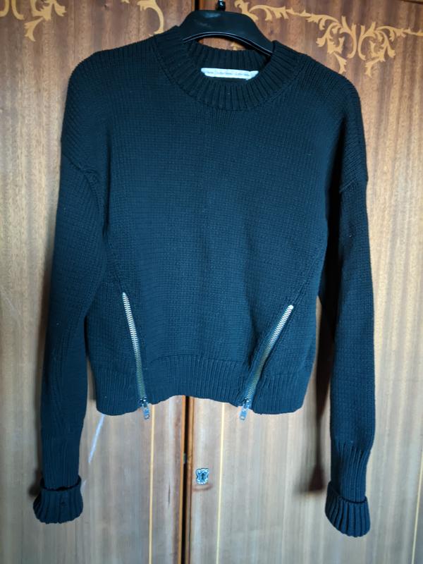 чорного кольору,крупної в'язки, обхват грудей -108см,повна довжина рукава -65см, довжина светра -54см,виробник Китай,склад тканини вовна -70%,поліамід -30%