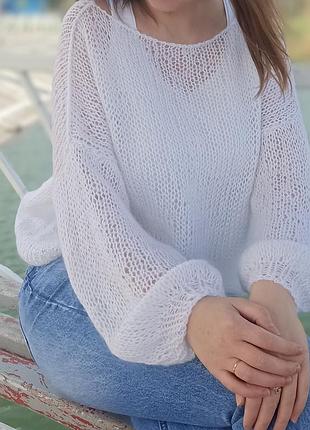 Красивый и легкий как перышко свитер. Размер универсальный. Возможно в другом цвете. Пишите помочь с изделием. Красиво подойдет под праздничные образы и на каждый день. За счет мохера в составе теплый, не колкий. Под заказ. Срок исполнения 10 - 14 дней