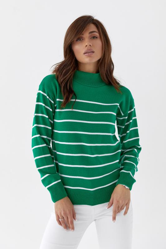 Стильный полосатый свитер хит этого сезона. Выполнен из мягкой приятной на ощупь пряжи шерсти и акрила. Манжеты в виде резинки на рукавах и по низу свитера. Широкий воротничок-стойка. Размеры универсальные: норма 42-48, батал 48-54 Ткань: пряжа 50% шерсть, 50% акрил Цвет: зеленый. Есть такие цвета: зеленый, синий, фрез, белый, черный, беж Модель на фото имеет размер 44. Не оформляйте заказ на сайте - пишите в личку. Отправка в течении 2-3 дней после полной или минимальной предоплаты.