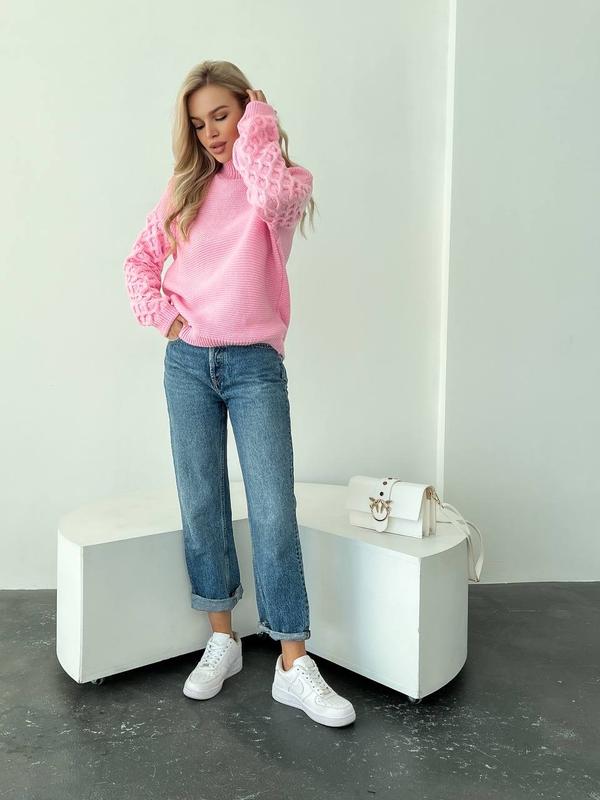 Вовняний светр з об’ємними рукавами. Горловина стійка ▪️Склад: 50% вовна, 50% акрил (Марс) ▪️Кольори: Кемел Зелений Світло-Рожевий Блакитний Молочний Електрик ▪️Розмір: 42-46