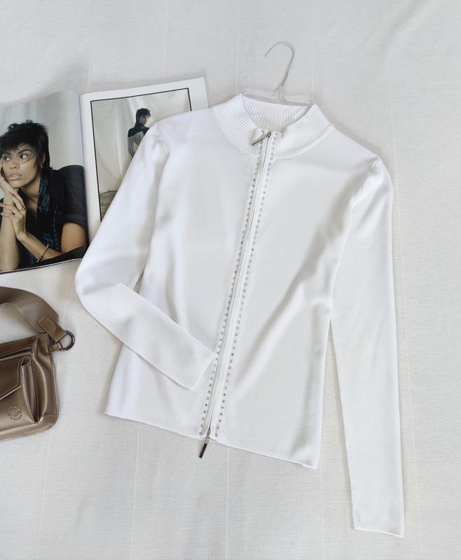 🌿красивий білий светр на замку прямого крою, гарно тягнеться Розмір:S Заміри:ПО грудей 40 см, довжина 53 см, довжина рукава 55 см Склад: віскоза