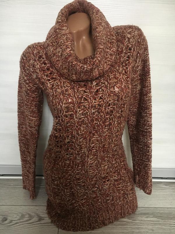Теплий довгий ажурний светр-туніка красивої крупної в‘язки. Меланж. Коло шиі можеа викладати по різному. Заміри: Довжина - 79 ПОГ - 44/54 Пот - 40/45 ПОБ - 44/52 Довжина рукава від горловини - 66 В‘язка дуже добре тягнеться