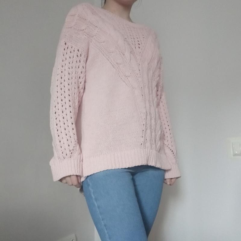 Светр блідо рожевого кольору Stradivarius, на етикетці розмір с, але виглядає як оверсайз