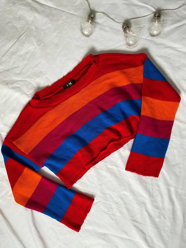 Яскравий в'язаний светр-топ з імітацією необробленою краю 🧶 Суперефектна річ у гардеробі ❤️ Розмір: s-m