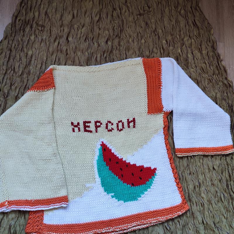 🔥🔥🔥1+1=3!!! НА ВЕСЬ ТОВАР!!!🔥🔥🔥 Кофта, що зв'язана з простих котонових ниток Не парить Ручна робота. Довжина 50 см ПОГ 48 см Плечі 43 см Рукав 35 см (3/4) M-L Висилаю укр, новою поштою, Джастін, міст експрес
