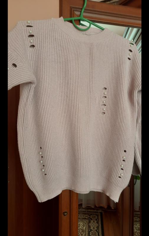Теплий, в'язаний светр, ніжно рожевого кольору, з декоративними перлами та вирізами, без дефектів.Пишіть в особисті повідомлення. Відправка Новою Поштою, є накладний платіж.