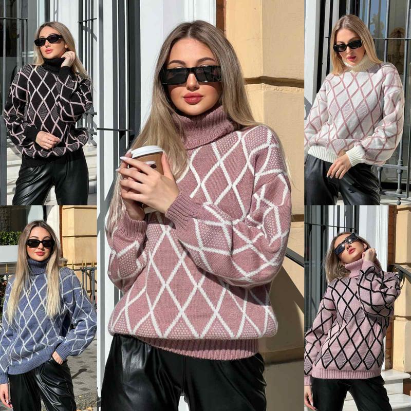 Светр Модель 5015 Склад: 30% акрил; 70% вовна Розмір: універсальний 42-52 Ціна 670 грн Заміри: - довжина по спинці 63-64см; - довжина рукава від горловини 76 см; - ширина светра 52-62см. Кольори: - основний молоко + темна пудра; - основний чорний + світла пудра; - основний темна пудра + молоко; - основний світла пудра + чорний; - основний джинс + сірий