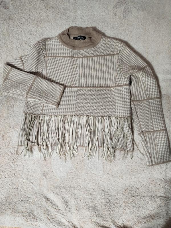 Свитер тёплый, очень плотный. Красиво смотрится на теле. Длина 47 см, ширина 44 см, длина рукава 53 см. Качество супер.