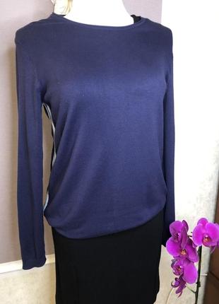 Синий свитер/туника с лампасами василькового цвета с полосками *без бирки