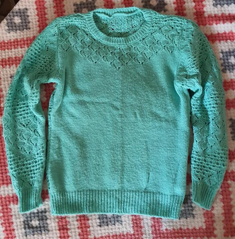 светрик жіночий,ажурна в'язка,стан дуже гарний,приємний м'ятний колір,підійде на розмір 42-46