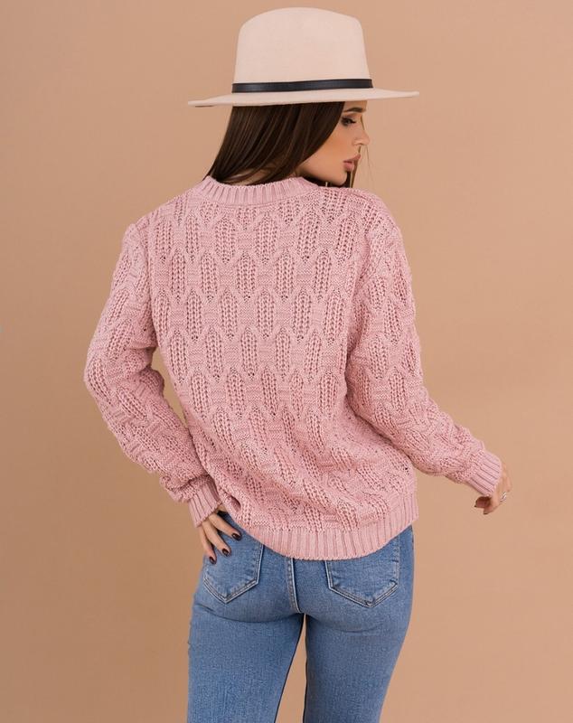 Новый с биркой теплый шерстяной джемпер объемной вязки выполнен в розовом цвете. Модель с прямым традиционным кроем и закрытой горловиной оснащена длинными рукавами и фактурными манжетами. Размер S Длина от плеча и до низа 57 Ширина 48 Длина рукава от плеча 52см, от горловины указан на фото Материал: 70%акрил, 30% шерсть