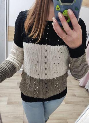 Свитер Турция,шерстяной, супер качество с жемчугом, размер 42-48р состояние новое 🔥600 грн🔥