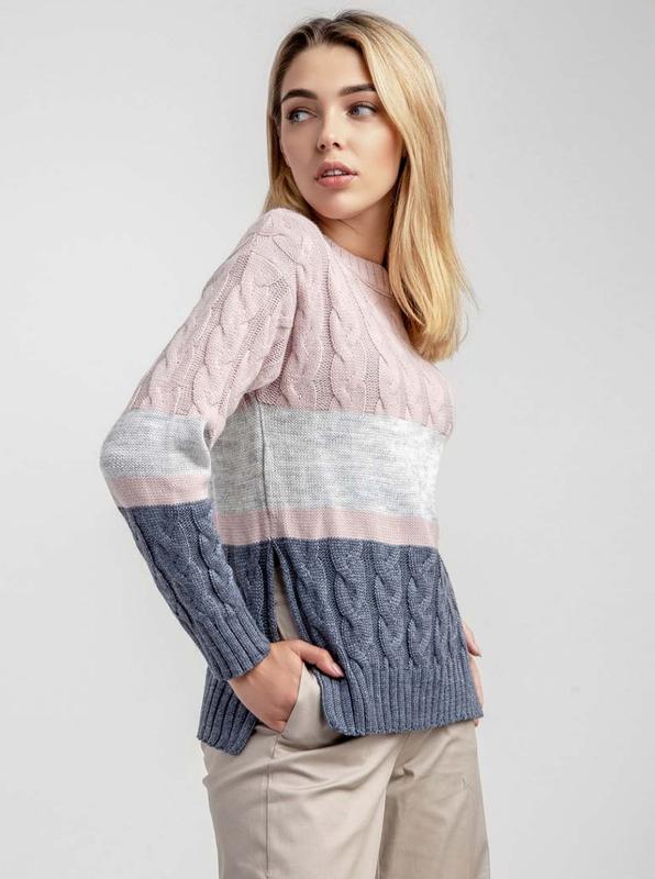 Теплый эффектный свитер, удлиненный, вязкая - косичка. Приятный материал. Очень красивое и нежное сочетание цветов. Идет как оверсайз. На размер S-М, можно и на L, но будет более притален. Что касается замеров пишите в частные сообщения.