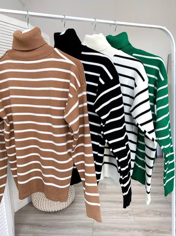 🔸Теплий смугастий светр з горловиною в стилі оверсайз🔸 🔸Модель 89 🔹Виробництво - Туреччина 🔹Щільна машинна в’язка - 50 % котон, 50% акрил . М’який , не колеться 🔹Розміри - універсал ( 42-46) 🔹ОГ - до 102 см 🔹Ширина внизу светра по гумці - 48-49 см 🔹Довжина - 60-61 см 🔹Довжина рукава від горловини - 71 см
