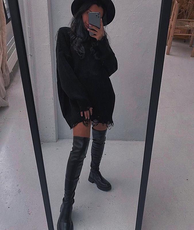 Очень стильная свитер-туника рванка✨ ▫️ Производитель: Турция ▪️ Размер единый: 42-46 ▫️Ткань: вязкая ▪️Цвета: черный ◾️Измерения: ▫️Длина 85см ▪️ Ширина ПОГ 60см ▫️Длина рукава от горловины 72 см