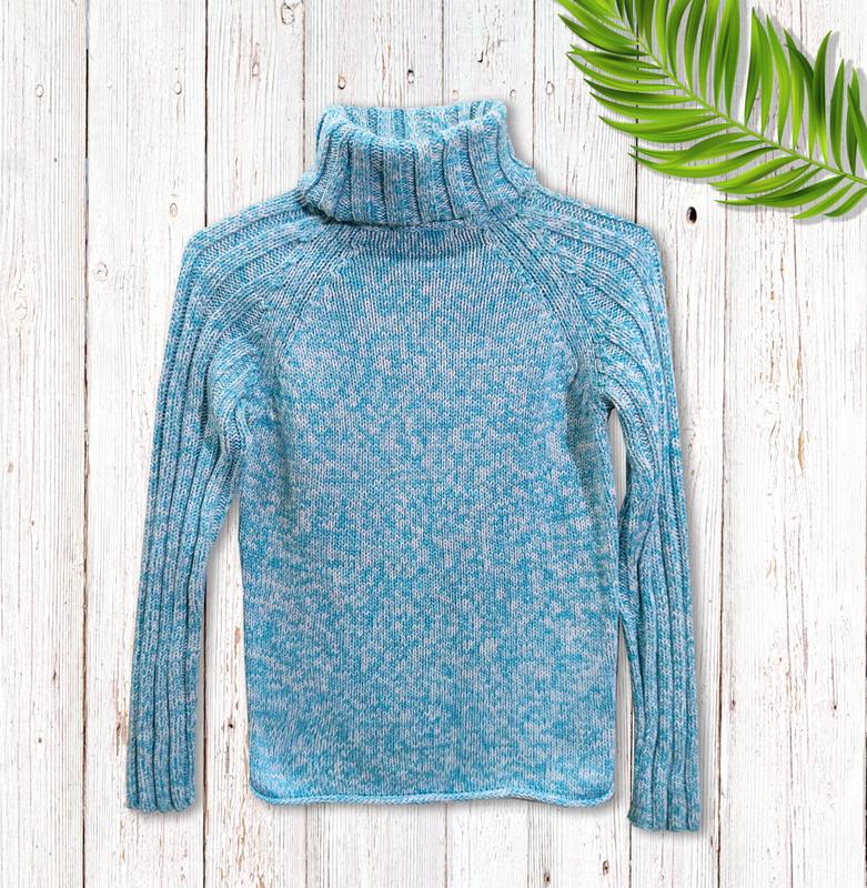 Стильный свитер с воротом от Vero Moda. Основное полотно - гладкая вязка. Рукава и ворот - в рубчик. Плотный. Цвет - голубой пастельный меланж. Очень приятный у телу за счет натуральной нити. Размер - S/M