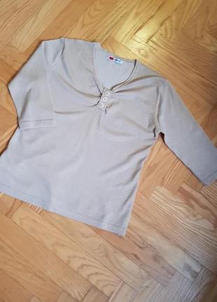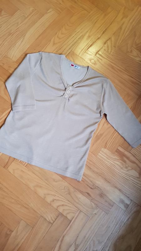 Кофта светер жіноча, розмір M-L, 46-48, кольору беж, рукав3/4, по груди-48см, довжина-61см, рукав-39,5см, плечі-41см. склад 65%- котон, 20%- вовна, 15%- поліестр. Дуже гарний ніжний бежовий кольор, не можу передати на фото.