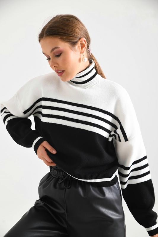 Стильний гольф оверсайз у смужку. М'який, приємний до тіла. Кольори - чорний, синій, беж. Склад: 50% ACRYLIC, 50% COTTON. Виробник Туреччина. Підходить на розмір 42-46.