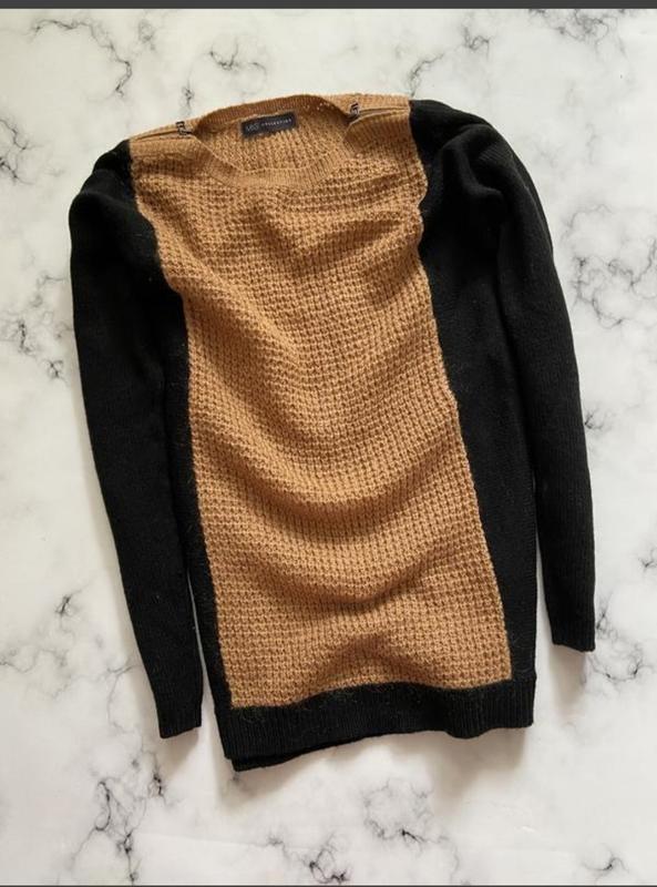 Светр актуальний в цьому сезоні, присутні різні фактури в'язки, тепла, приємна тканина, манжети на рукавах і внизу по колу. Стан новий, але без бірок