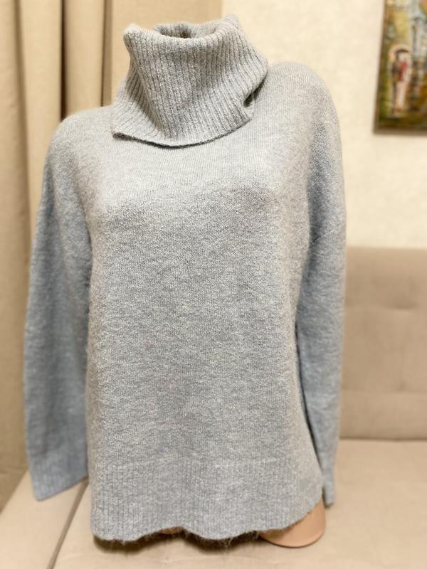 Класний , ніжно блакитного кольору. Бірки з складом немає, ангора-шерсть , мягесенький. Стан нового ПОГ-54 Довжина (перед)-59 (По спинці-64)