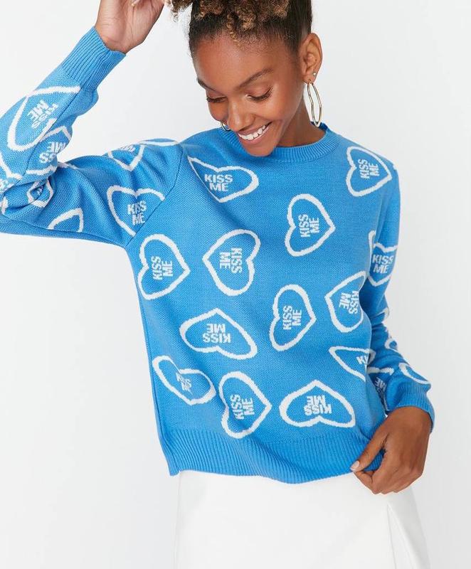 ❄️❄️NEW COLLECTION🤍💙 Трендові светрики оверсайз KISS ME в яскравому блакитному кольорі🤩 Щільна в’язка, акрил Виробник Туреччина🇹🇷якість🔥 Розмір єдиний 42-46, довжина 56см, ширина 54см, рукав 59см А056