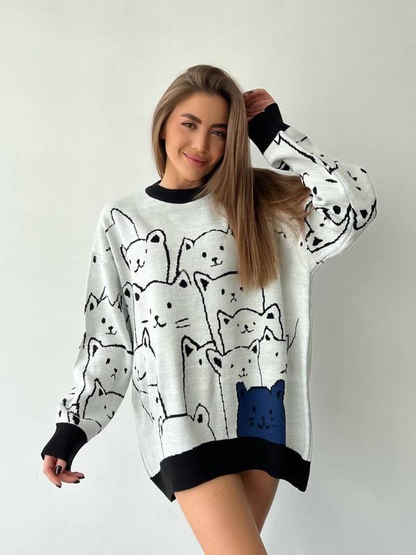 Murr 😻 •Светрик оверсайз з трендовим котиком 🐈 • Розмір: оверсайз 42-46 • Довжина 78 см • Склад тканини: акрил • Виробництво: Турція 🏷️ Ціна : 860.00 грн 13287