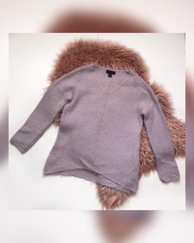 Светр ніжного лілового кольору,вживу колір трішечки яскравіший,ніжний Дуже м'який і приємний до тіла Без дефектів,не покачан Плечі приспущені