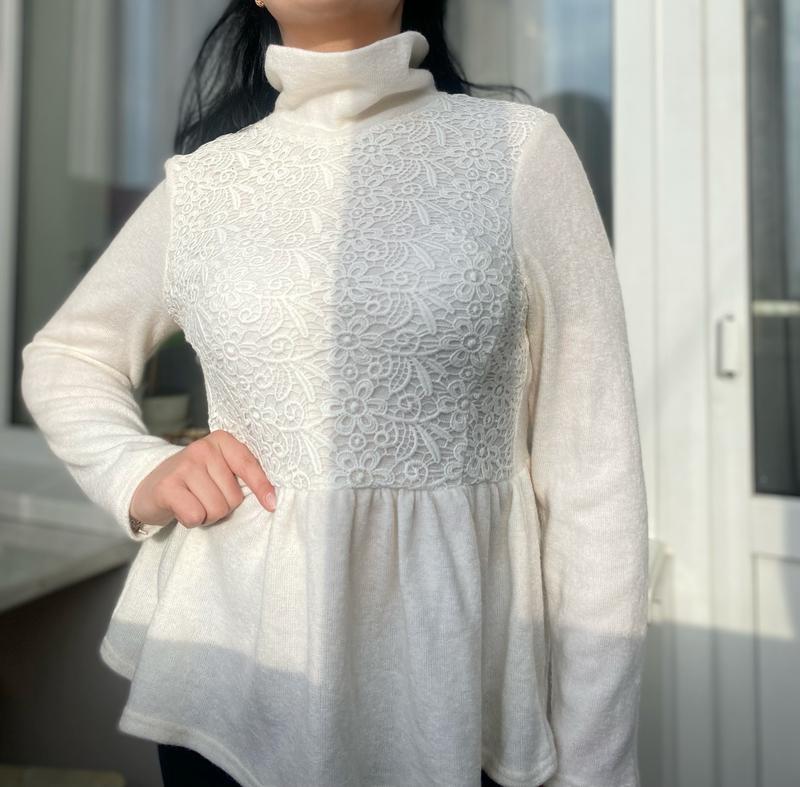 Теплая и стильная кофта Длина без горловины-65 Длина рукава-63 Полуобхват грудини-47 Тянется 10/10