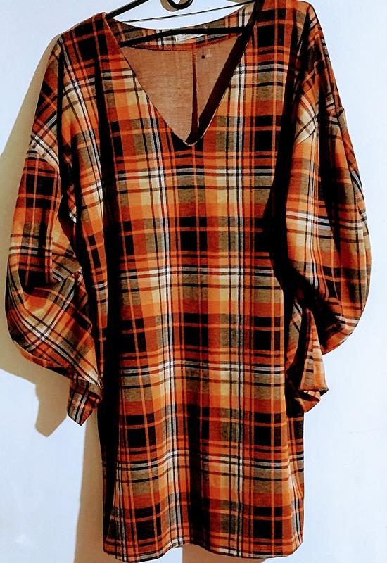 Очень уютная женская трикотажная туника, красивый крой рукава ( создает обтем в верхней части рукава, как буф, фонарик). Ткань мягкая, слегка эластичная. Состояние отличное.