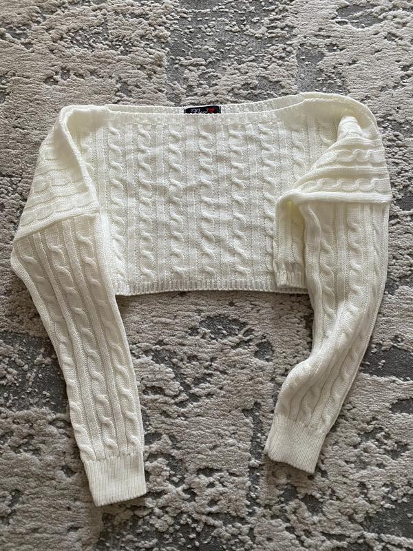 Укороченный свитер, стильная вязка, очень красиво смотрится с белой рубашкой, новый