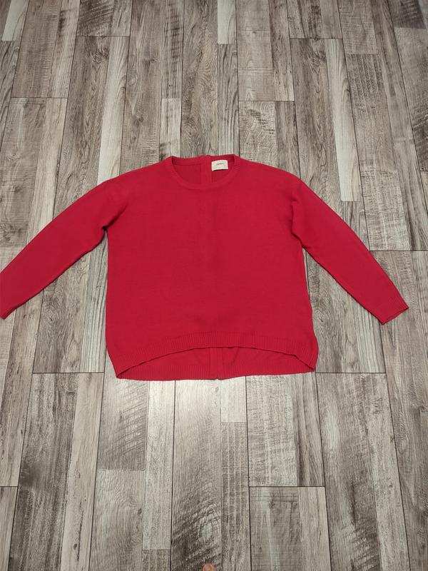 Жіночий светр насиченого червоно кольору. Ззаду подовжений, на блискавці, яка розкривається до самого верху. Стан нової речі. Розмір Л, але факту буде і на ХЛ. рукав від шиї 78 см плечі(подовжені) 64 см ПОГ 67 см довжина ззаду 74 см довжина спереду 63 см