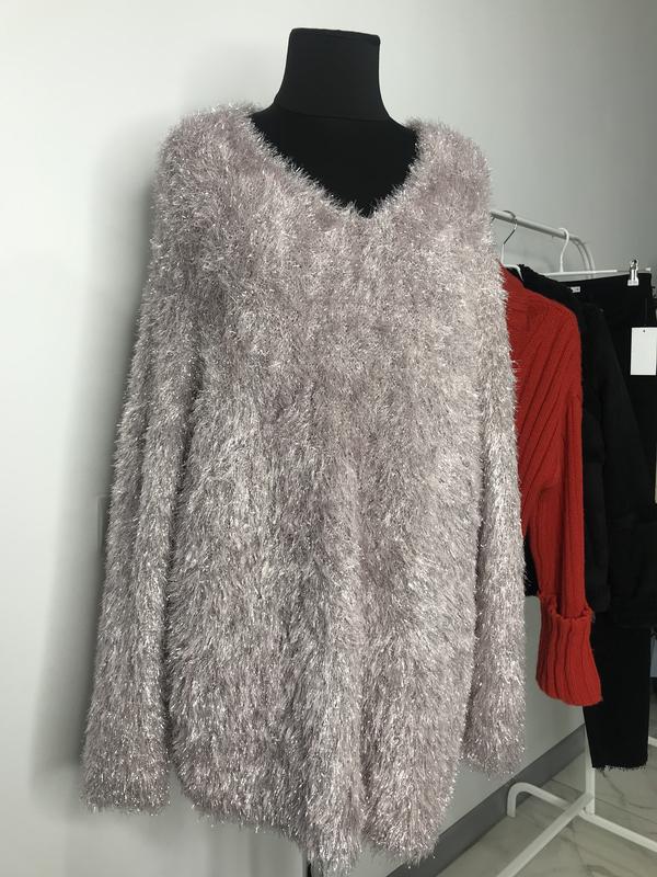 Розмір:L Ог: 130 см Рукав:67/45 см Довжина:73 см Светр тягнеться 😊 Склад :74% полиестер 26%металик