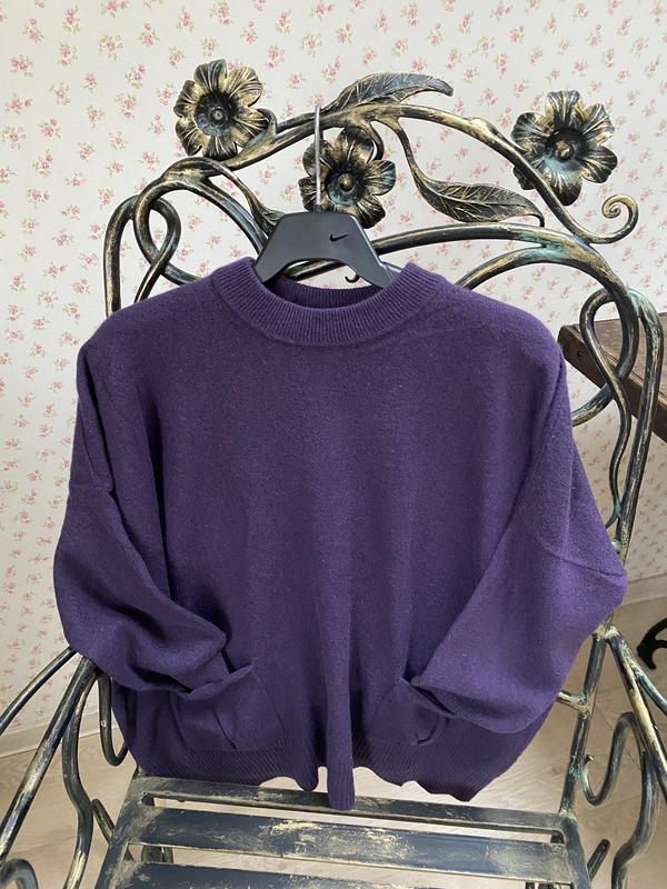 Стильний светр оверсайз в дуже гарному стані.Є тількі нюанс -маленька дірочка,зовсім не помітна,якщо не знати 100% кашемір.