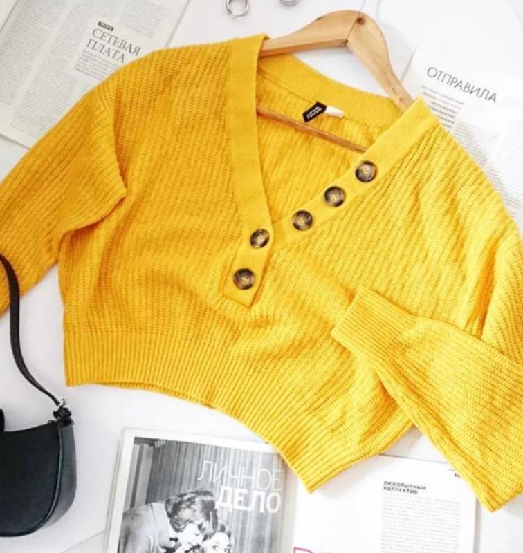 Светр жовто гарячого кольору,з великими гудзиками м'ягкенький,теплий стан нового