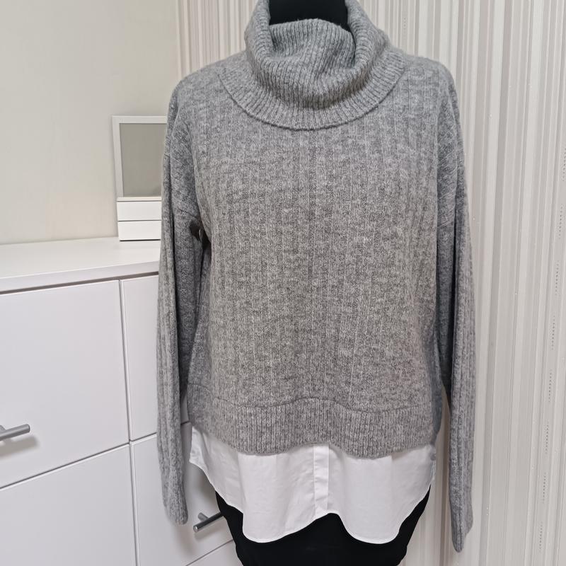 Світерок сірого кольору, знизу імітація сорочки. Дуже теплий. Розмір M.