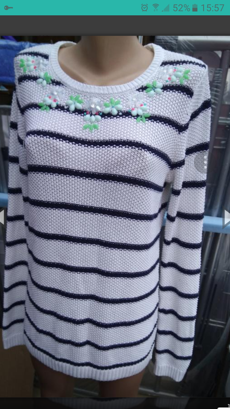 Полосатый свитерок с имитацией колье.Размер М-L.