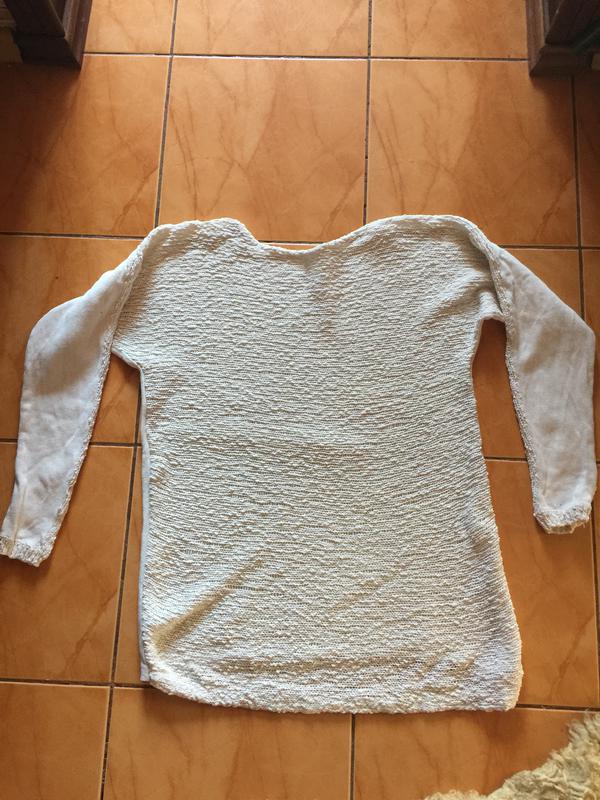 Перед букльована нитка,ззаду -трикотаж Довжина спинка-62 см Довжина перед-72 см Довжина рукава-61 см( без плечового шва від горловини) Пог-48 см