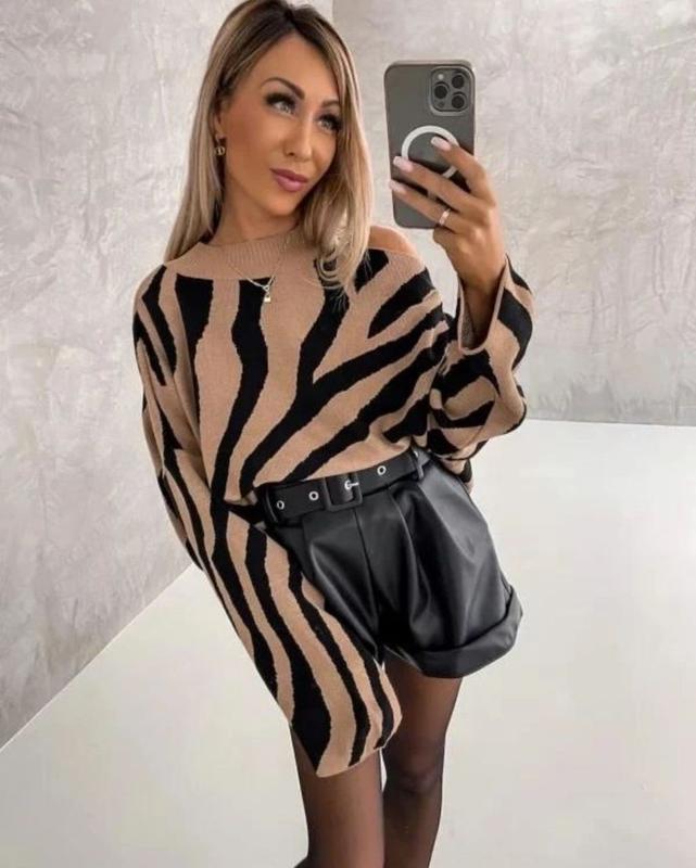 Женский свитер зебра на одно плечо