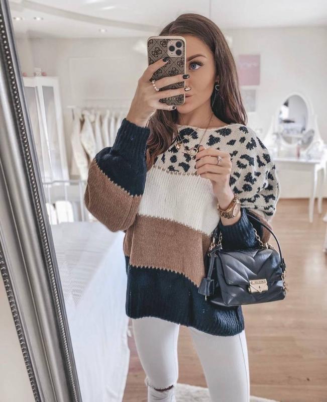 ❣️Знову в наявності ❣️ Ваша улюблена модель ❤️ Тепленькі светрики з леопардовим принтом в двох кольорах 💋 🔸Висока фабрична якість ,Туреччина 🇹🇷 🔸Розмір єдиний 42/46 Довжина 68 см Ширина 50 см Склад 70 акрил ,30 вовна ✨Цена 940 грн