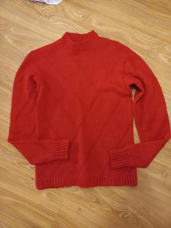 Свитер шерстяной сделан под горло как гольфик ,очень тёплый в хорошем состоянии без дефектов. Длина 63 ПОГ 46 Рукав 65