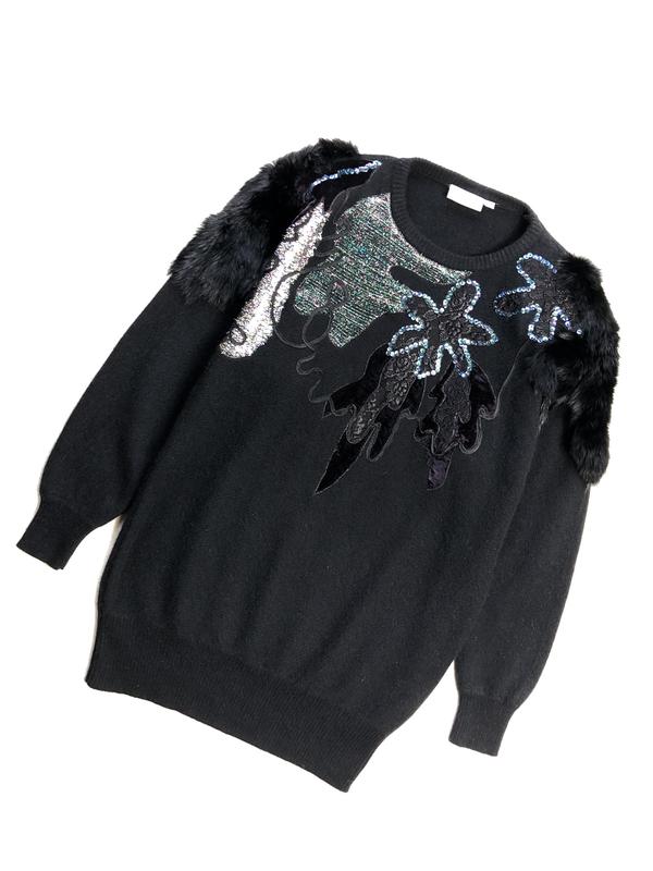 Шикарный винтажный свитер Marco Красивое сочетание декора из натурального меха, кружева, бархата Размер 46 Италия,европейский L Фасон свободный, можно носить как оверсайз на маленькие размеры Пог 58 см Резинка внизу 39 см Длина 78 см Рукав 75 см от горловины