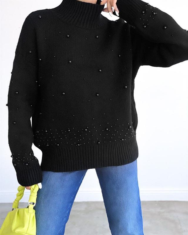 Кофта свитер с бисером чёрный теплый зима осень
