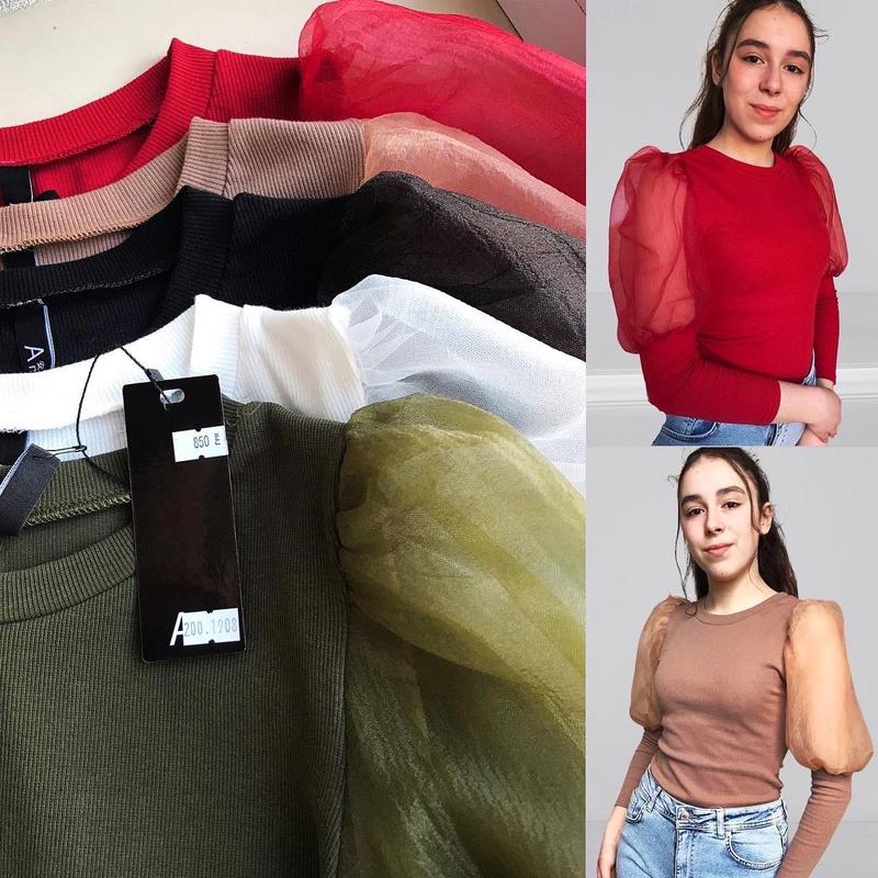 Акция!!️Цена 350грн🔥🔥🔥Кофточки в рубчик с рукавами из органзы❤️ Кольори на фото. Размер универсал 42-46.
