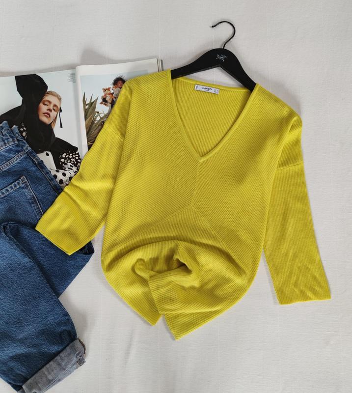 яркий желтый свитер Mango свободного кроя с рукавом 3/4, размер М, ПО груди 53 см, длина 64 см, длина рукава от горловины 53 см