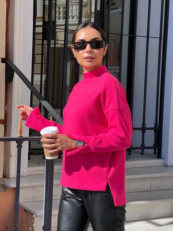 Светер Модель: 8324 Ціна:630грн Размер: 42-46, 48-52 - малиновый 48-52 - черный Фото реальные. Цвет: черный, малиновый. Ткань: ангора вязка, качество отличное, приятное на ощупь. Замеры : 42-46 ОГ- 120 см ОТ - 110 см Длина перед - 62 см Длина по спинке - 70 см Длина рукава - 60 см от плеча Замеры: 48-52 ОГ - 132 ОТ - 120 см Длина перед - 64 см Длинна по спинке - 72 см Длина рукава 62 см от плеча. Светер прямого кроя, очень теплый, яркие цвета зажми актуальные осенью. Светер имеет удлиненную спинку, Манжеты с разрезами, опирает воротник.