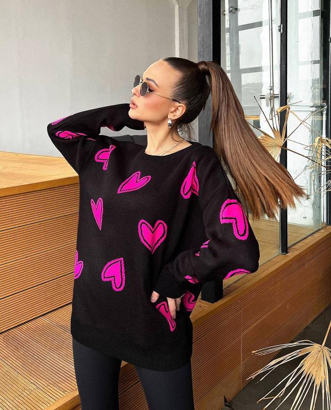 🔸Свитер с принтом «сердечко» 🔸Модель da 99 🔹Производство - Турция 🔹В МЕЧИНА - 50 % коттон,50% акрил 🔹Размеры - универсал ( 42-46) 🔹ОГ - до 110 см 🔹ОБ - до 108 см 🔹Длина - 67-68 см 🔹Длина рукава от горловины - 69-70 см ❗️В замерах вязаных изделий могут быть незначительные погрешности