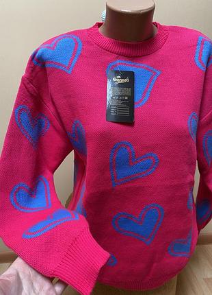 Малинова яскрава кофта -туніка в сині сердечка💙💙💙