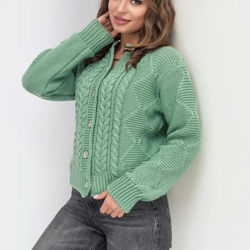 🧶В'язана кофта на ґудзиках. Модель доповнена косами та аранами. 🎨Колір:м'ятний, лавандовий ✔довжина виробу – 50 см ✔довжина рукава (від плечового шва) – 55 см 🧵Склад 50% вовна, 50% акрил 🧵Матеріал: Вовна з акрилом ✔Розмір:42-46, 48-50 💳Ціна 1250грн 24275/1 ❗❗Для замовлення та детальної інформації пишемо у дірект💌, або коментарі ⤵️