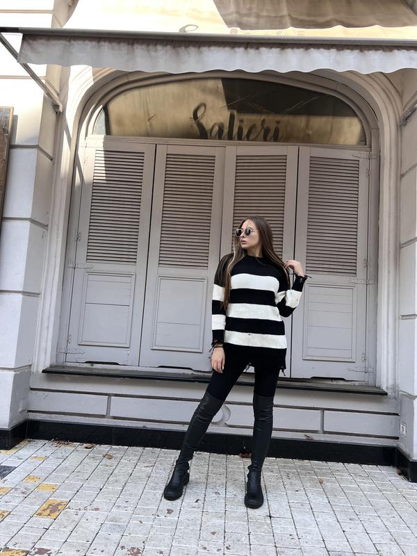 Удлиненный свитер в полоску и в синем цвета. Модный,теплый . Размер универсальный